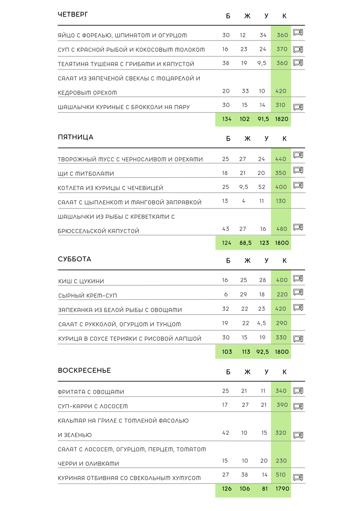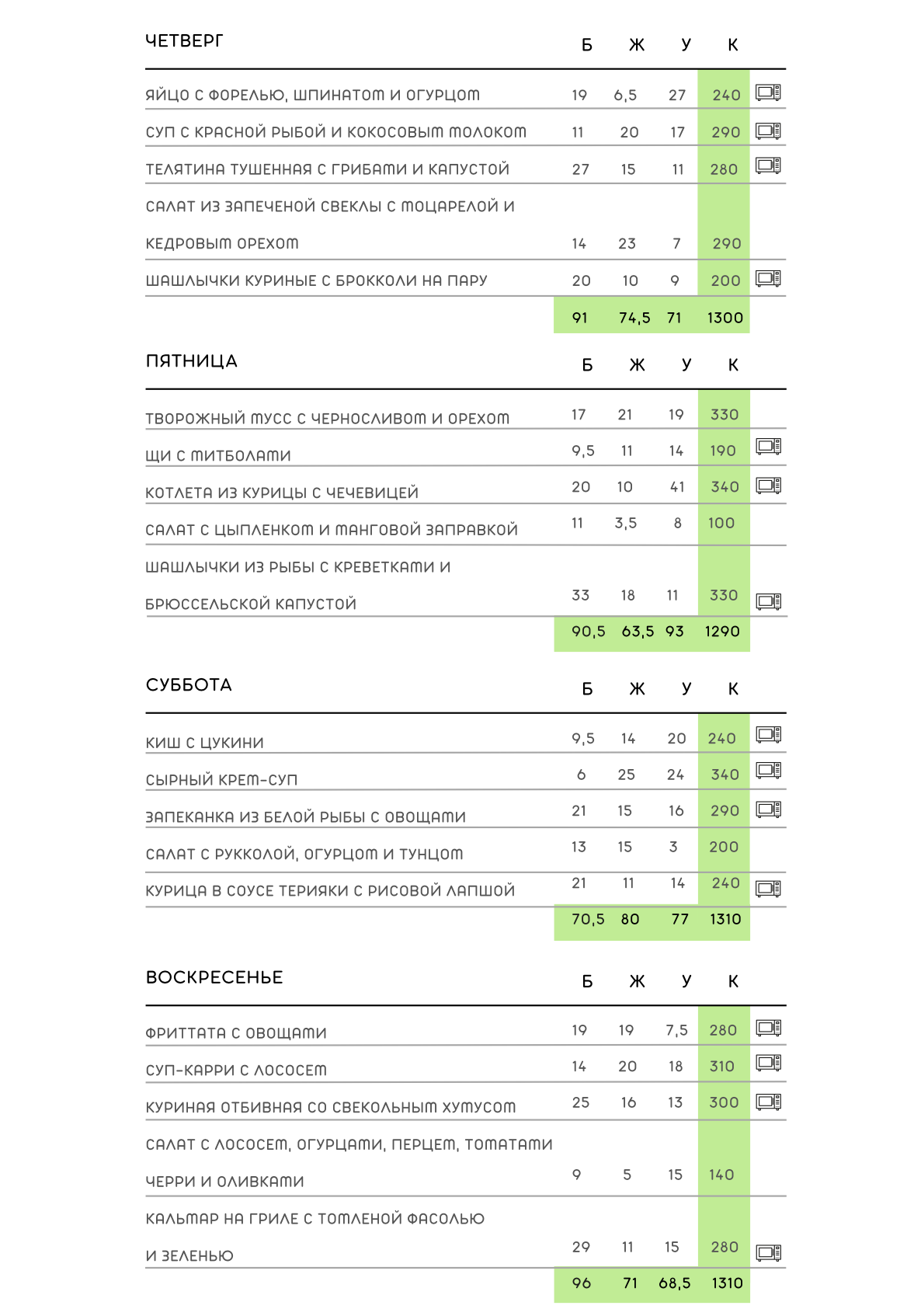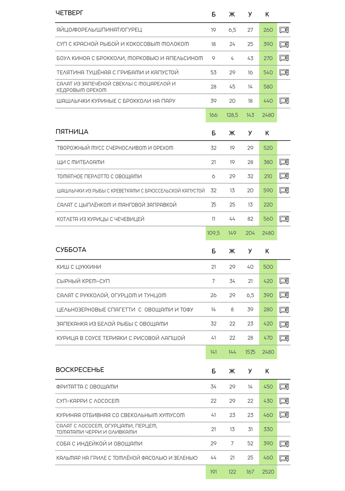 Данный рацион универсален для всех. Он помогает женщинам сохранить и поддерживать форму, питаясь сбалансированно, без потери времени и сил на готовку. Мужчинам, в сочетании с физической активностью и тренировками, он помогает снизить вес и достигнуть отличной формы. Рацион рекомендуется для длительного периода, чтобы организм получал разнообразную и здоровую пищу.